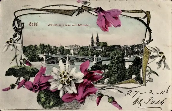 Passepartout Ak Basel Bâle Stadt Schweiz, Wettsteinbrücke, Münster