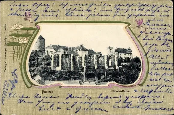 Passepartout Ak Bautzen in der Oberlausitz, Nicolairuine