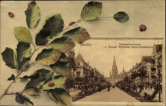 Passepartout Ak Berlin Charlottenburg Tauentzienstraße, Kaiser Wilhelm Gedächtniskirche, Marienkäfer