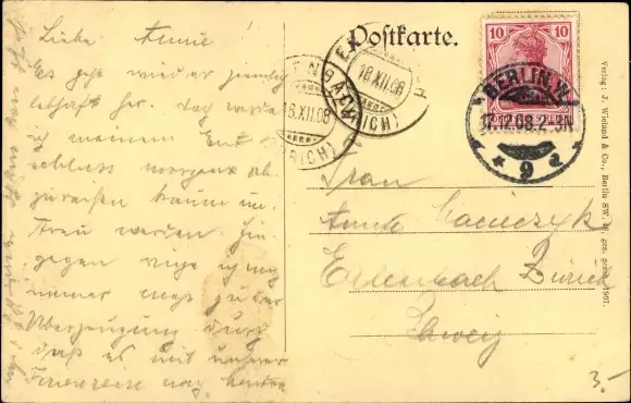 Zustand, siehe Scan, gelaufen, 1908 - ca 14 cm X 9 cm