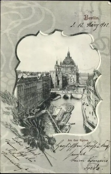 Passepartout Ak Berlin Mitte, Partie an der Spree