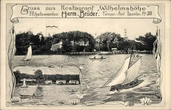 Passepartout Ak Berlin Spandau, Restaurant Wilhelmshöhe, Segelpartie