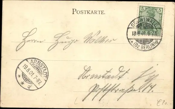 gelaufen 1901, Eckknick links oben, sonst guter Zustand
