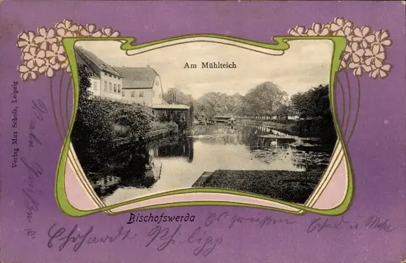 Passepartout Ak Bischofswerda in Sachsen, Mühlteich