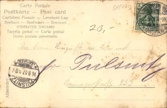 Zustand, siehe Scan, gelaufen, 1907 - ca 14 cm X 9 cm