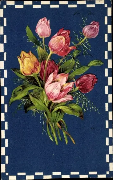Passepartout Ak Blumenstrauß, Tulpen