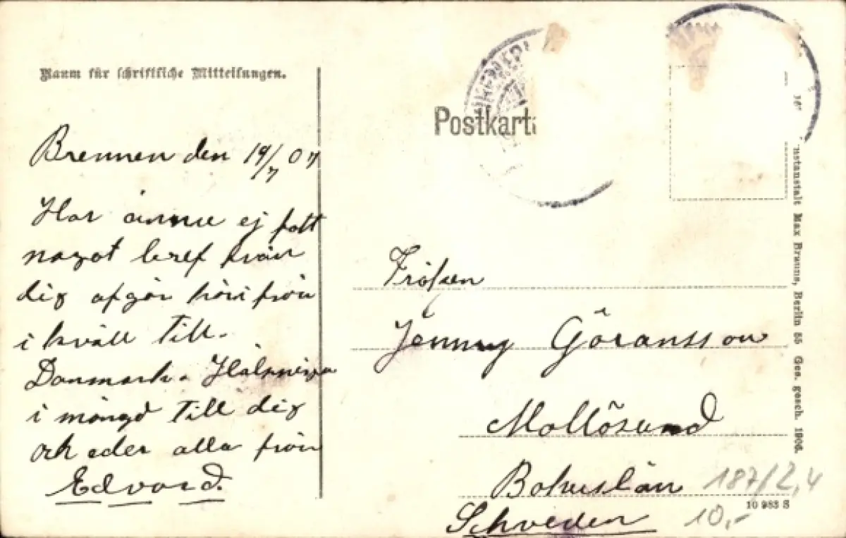 Zustand, siehe Scan, gelaufen, 1907 - ca 14 cm X 9 cm