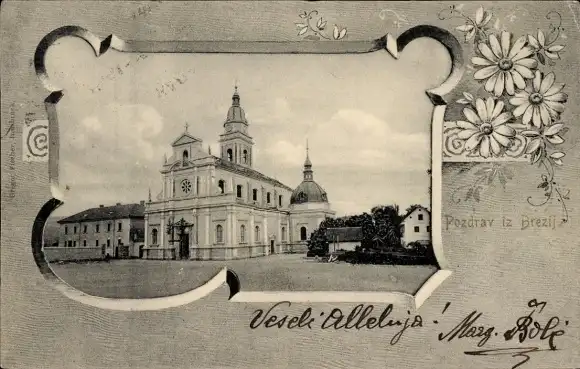 Passepartout Ak Brezje Pirkendorf in der Oberkrain Slowenien, Kirche