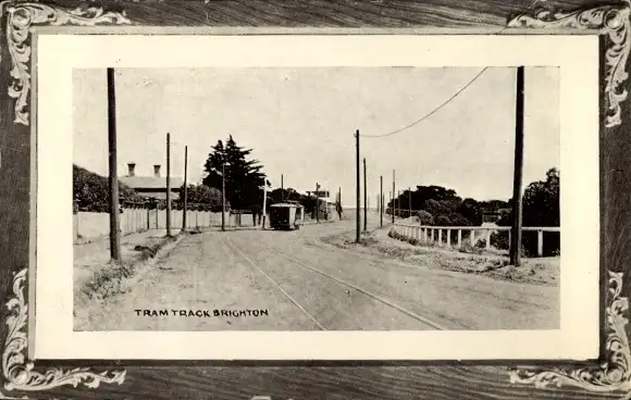 Passepartout Ak Brighton Victoria Australien, Straßenbahnschienen