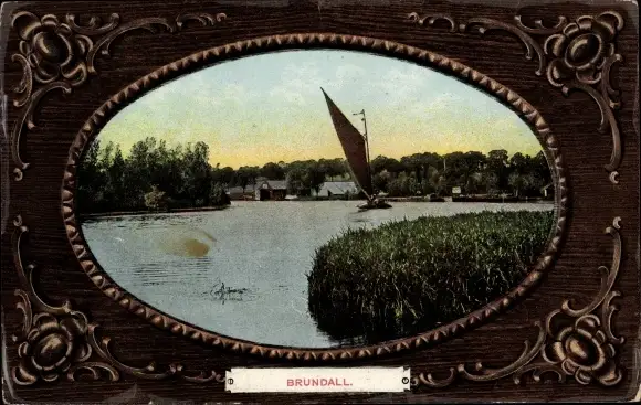 Passepartout Ak Brundall East England, Segelboot auf dem Wasser