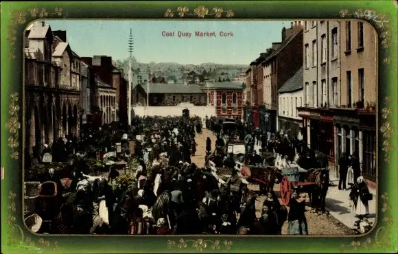 Passepartout Ak Cork Irland, Coal Quay Market, Glücksklee