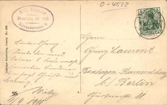 Zustand, siehe Scan, gelaufen, 1910 - ca 14 cm X 9 cm