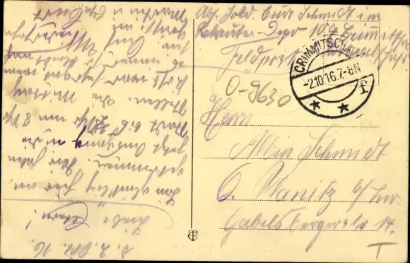 Zustand, siehe Scan, gelaufen, 1916 - ca 14 cm X 9 cm