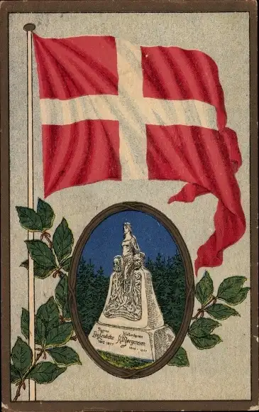 Passepartout Ak Dänemark, Flagge, Denkmal