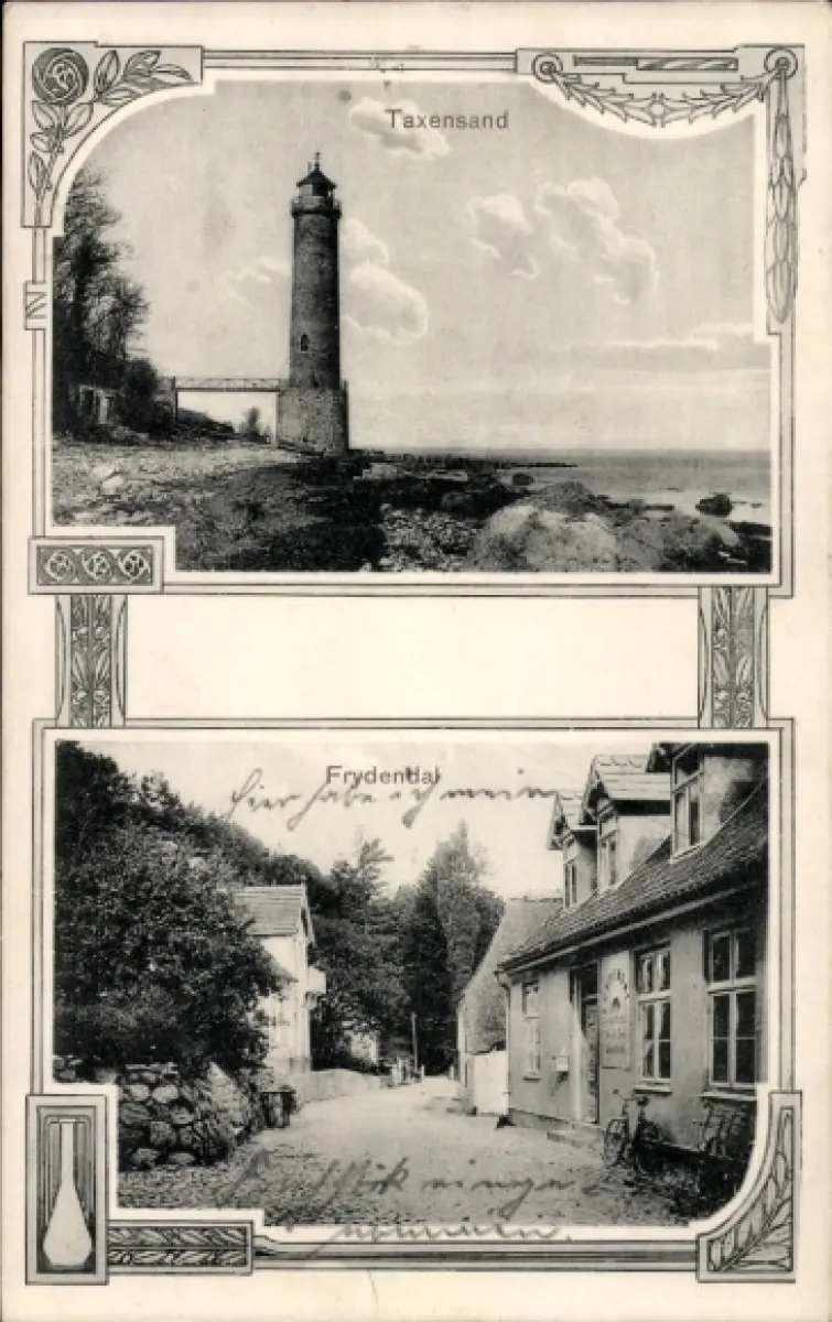 Passepartout Ak Dänemark, Leuchtturm, Taxensand