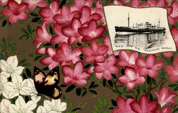 Passepartout Ak Dampfer MS Yasukuni Maru, Nippon Yusen, Schmetterling