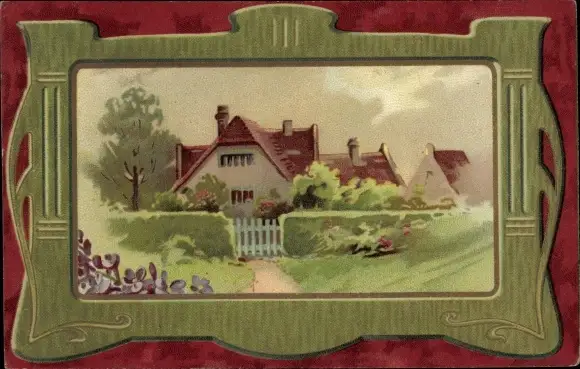 Passepartout Ak Dorfpartie, Wohnhäuser, Veilchen