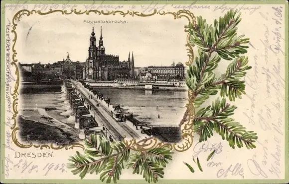 Passepartout Ak Dresden Zentrum Altstadt, Augustusbrücke