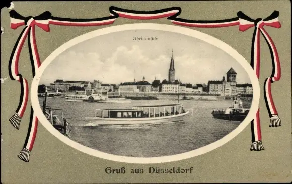 Passepartout Ak Düsseldorf am Rhein, Rheinansicht