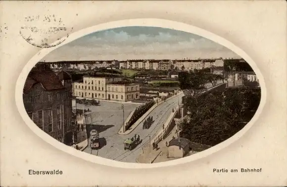Passepartout Ak Eberswalde in der Mark, Am Bahnhof, Brücke, Straßenbahn