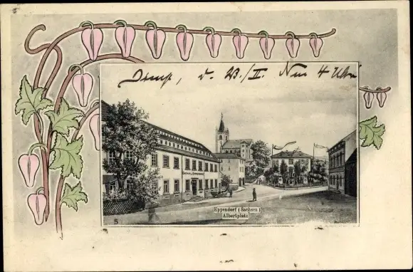 Passepartout Ak Eppendorf in Sachsen, Albertplatz, Kirche