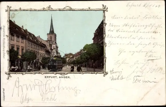 Passepartout Ak Erfurt in Thüringen, Anger, Geschäfte, Straßenbahn