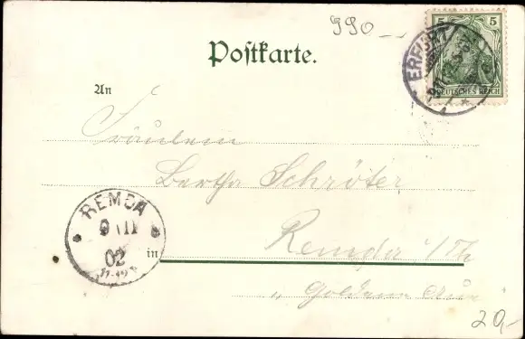 Zustand, siehe Scan, gelaufen, 1902 - ca 14 cm X 9 cm
