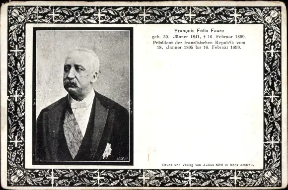 Passepartout Ak Francois Felix Faure, Präsident der französischen Republik, Trauerkarte, Portrait