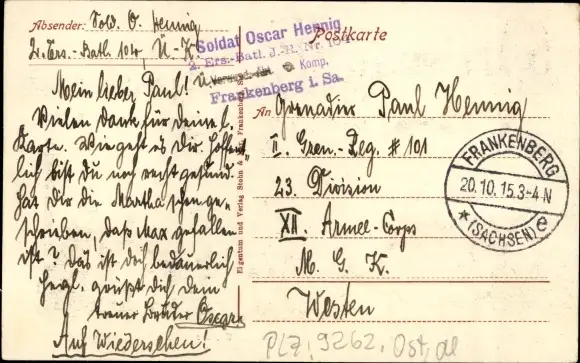 Zustand, siehe Scan, gelaufen, 1915 - ca 14 cm X 9 cm
