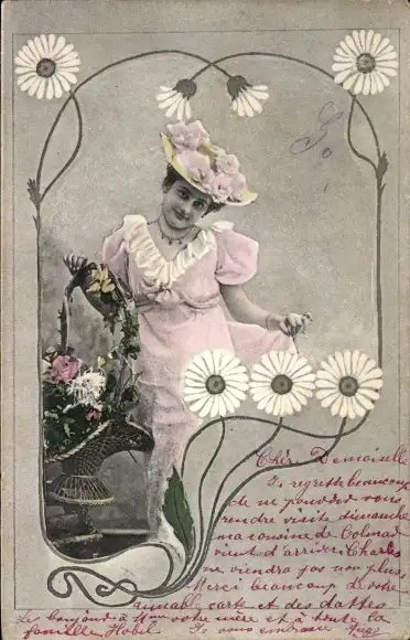 Passepartout Ak Frau mit Blumenkorb, Porträt
