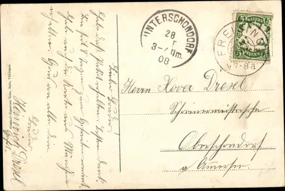 Zustand, siehe Scan, gelaufen, 1908 - ca 14 cm X 9 cm