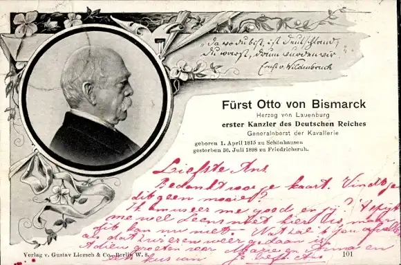 Passepartout Ak Fürst Otto von Bismarck, Tauerkarte, Portrait