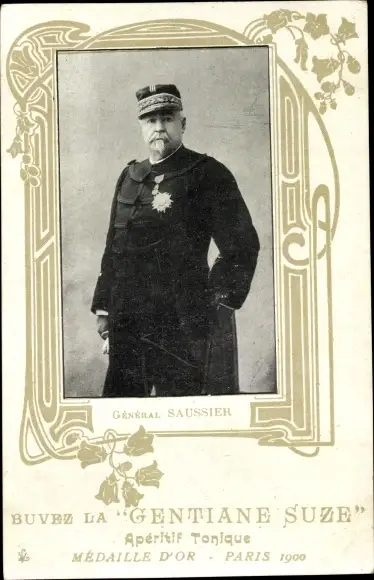 Passepartout Ak General Félix Gustave Saussier, Portrait in Uniform, Orden