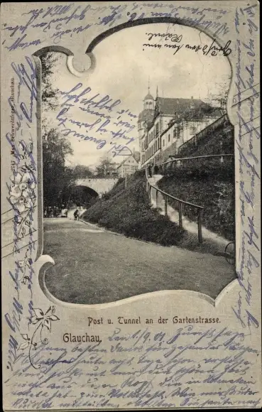 Passepartout Ak Glauchau, Post und Tunnel, Gartenstraße