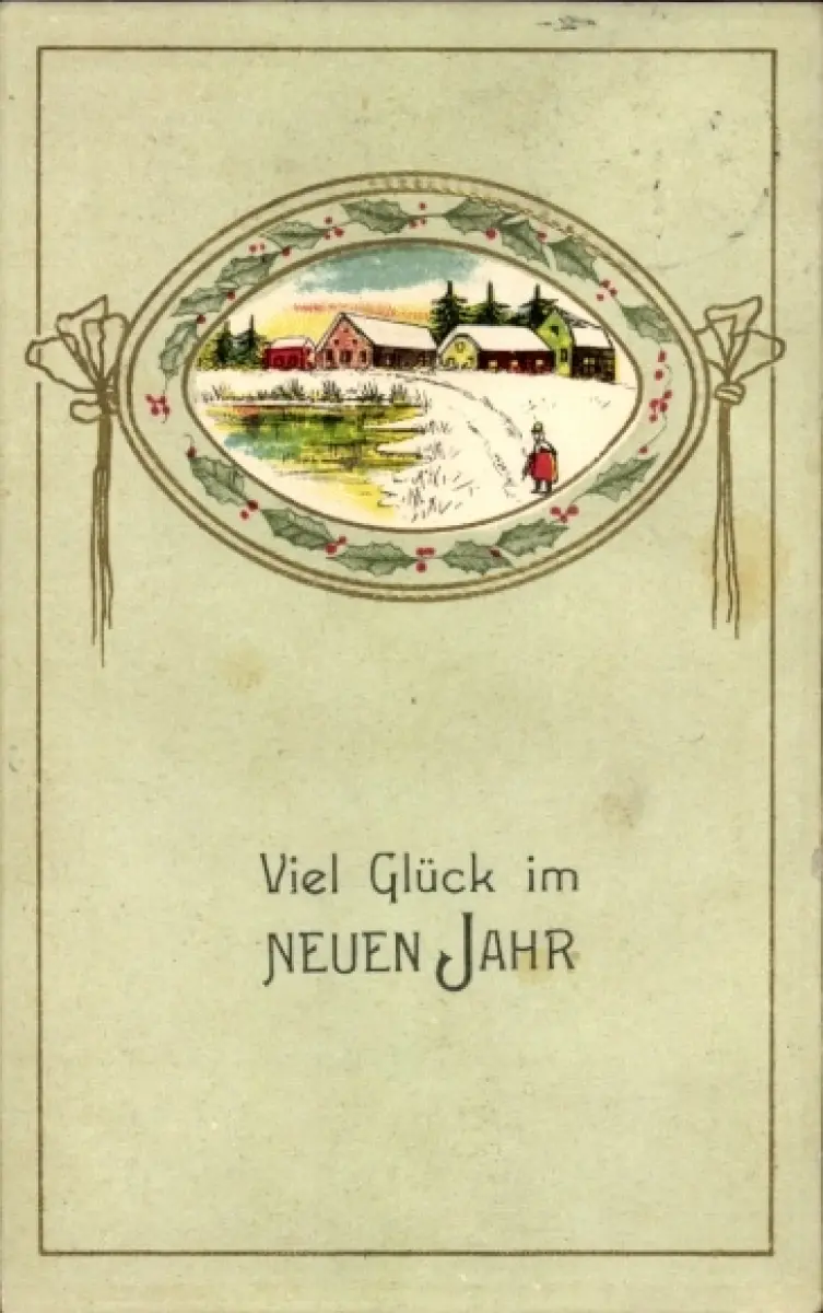 Passepartout Ak Glückwunsch Neujahr, Dorfidyll