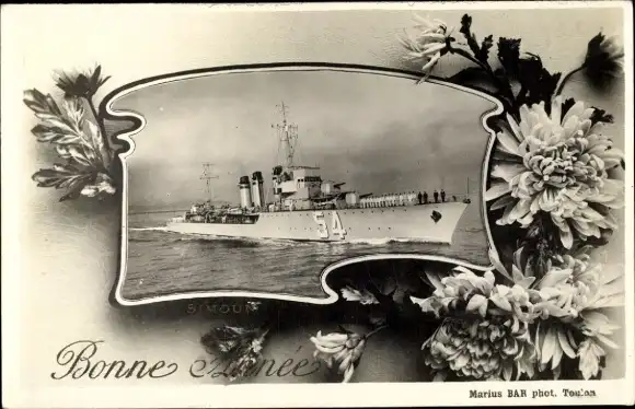 Passepartout Ak Glückwunsch Neujahr, Französisches Kriegsschiff Nr. 54