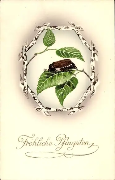 Passepartout Ak Glückwunsch Pfingsten, Maikäfer
