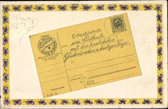 Passepartout Ak Glückwunsch, Postpaketschein