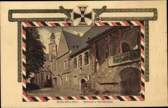 Passepartout Ak Goslar am Harz, Rathaus und Marktkirche