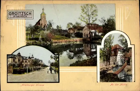 Passepartout Ak Groitzsch in Sachsen, Teilansicht, Mühle, Altenburger Straße