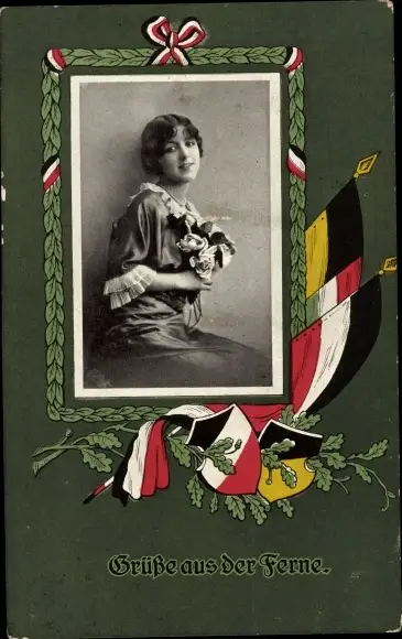 Passepartout Ak Grüße aus der Ferne, Portrait einer jungen Frau, Patriotik