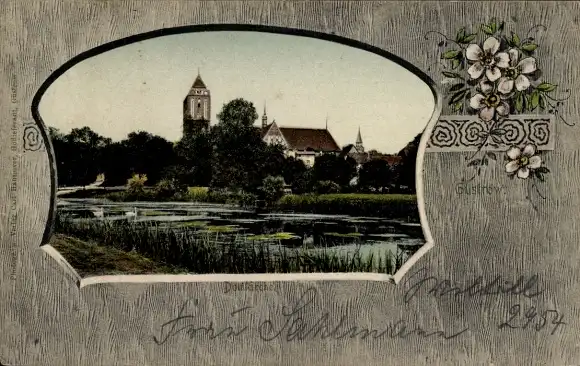 Passepartout Ak Güstrow in Mecklenburg, Blick zur Kirche