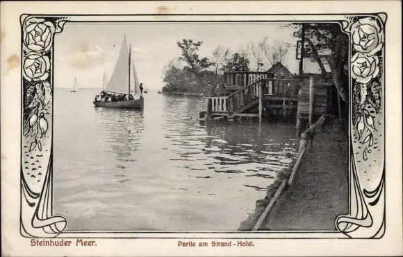 Passepartout Ak Hagenburg Niedersachsen, Steinhuder Meer, Stradhotel, Segelboot