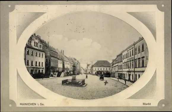 Passepartout Ak Hainichen in Sachsen, Markt, Denkmal