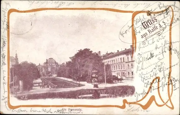 Passepartout Ak Halle an der Saale, Alte Promenade