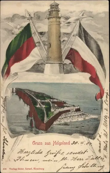 Passepartout Ak Helgoland, Leuchtturm, Fahnen