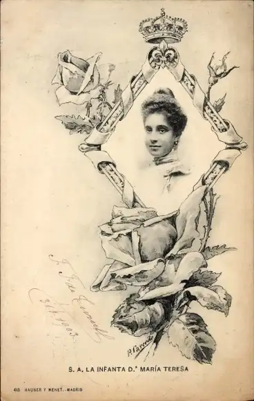 Passepartout Ak Infantin Maria Theresia von Spanien, Porträt, Rose