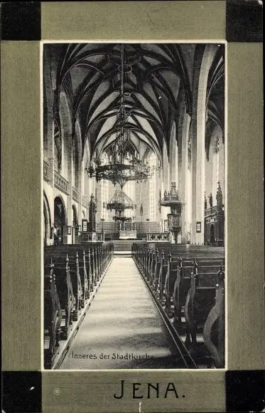 Passepartout Ak Jena in Thüringen, Stadtkirche, Innenansicht