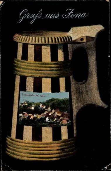 Passepartout Ak Jena in Thüringen, Teilansicht der Stadt, Bierkrug