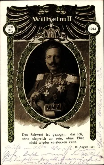 Passepartout Ak Kaiser Wilhelm II, Das Schwert ist gezogen, August 1914, Eisernes Kreuz